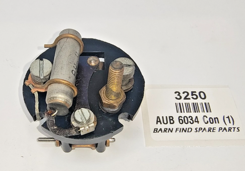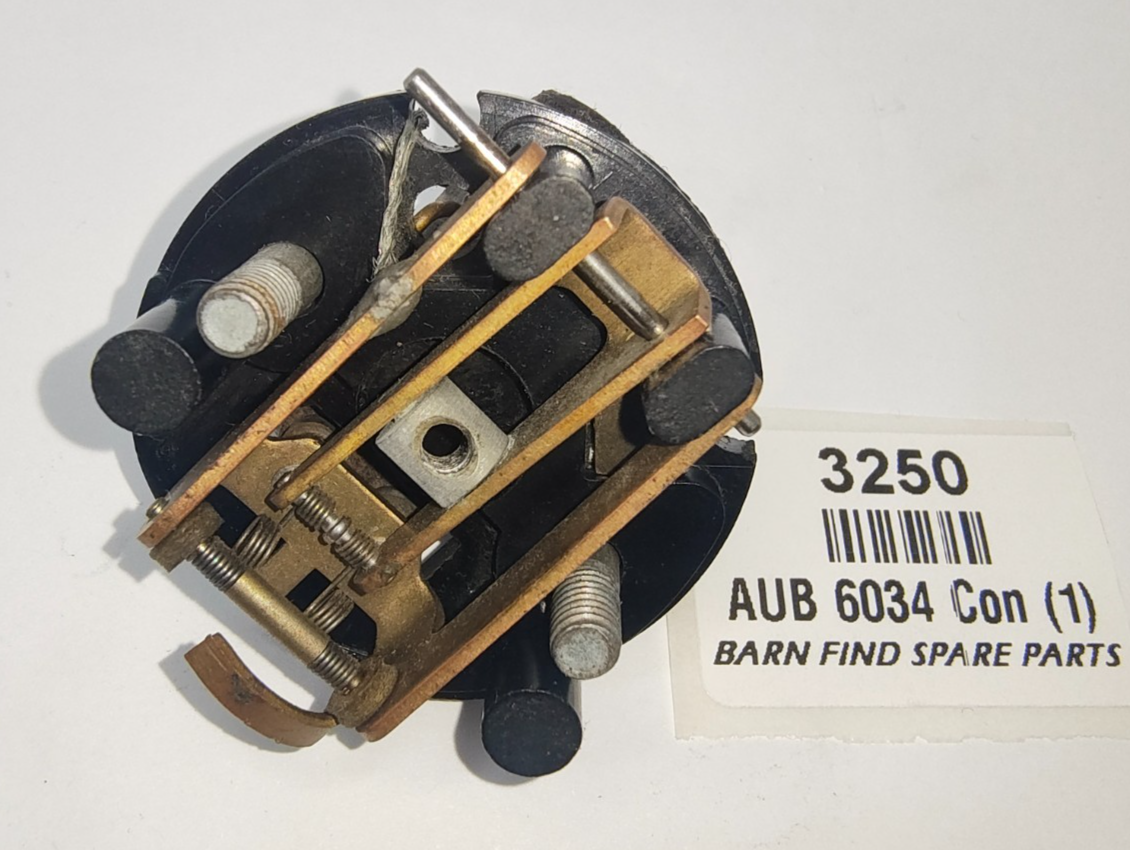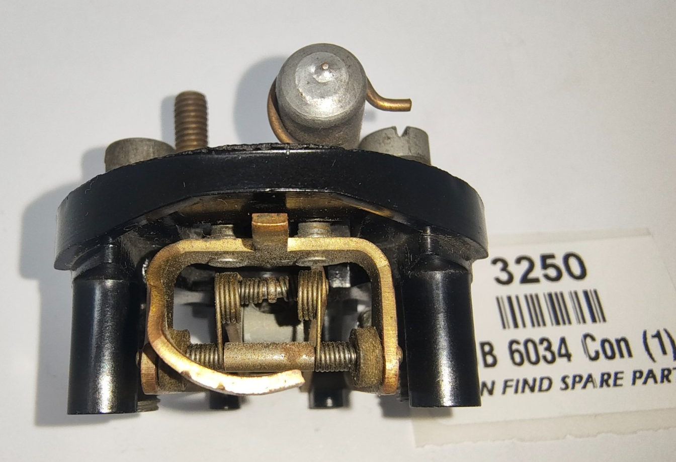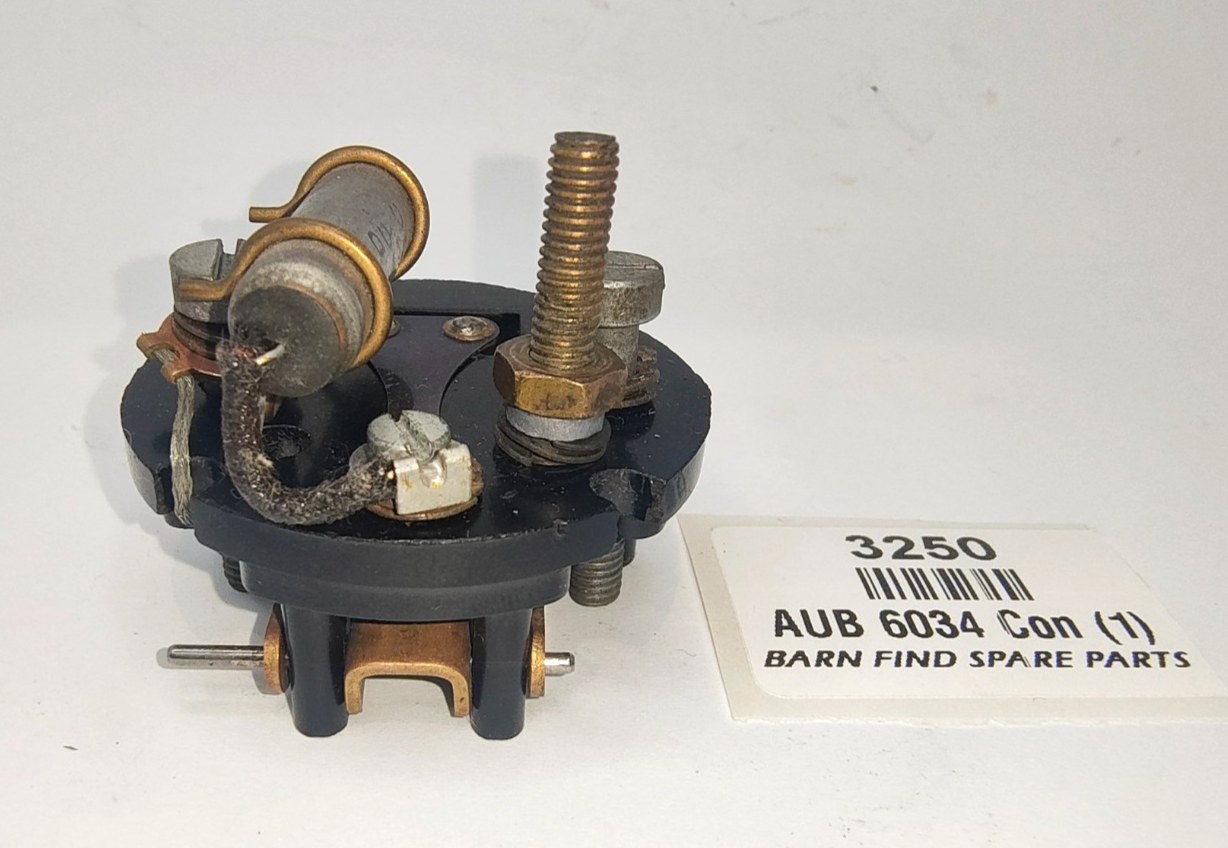 SU original USED Pedestal AUB 6034, complete with double point rocker assembly AUB 6106 including earth tag AUA 1 065, Terminal Stud AUA 1468, Spring Washer AUA 1863, Lead Washer AUA 1662, Rocker Pivot Pin AUA 1435, Contact blade AUA 6036, Condenser AUB 6179, 2 X Pedestal 2BA Screws AUA 1459.