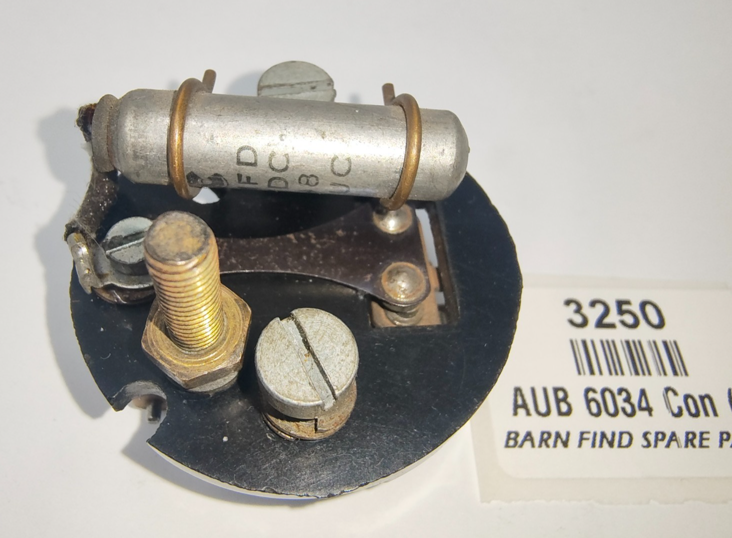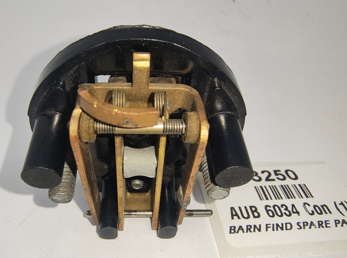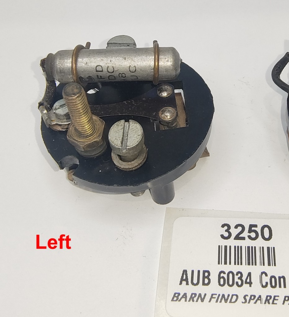 SU original USED Pedestal AUB 6034, complete with double point rocker assembly AUB 6106 including earth tag AUA 1 065, Terminal Stud AUA 1468, Spring Washer AUA 1863, Lead Washer AUA 1662, Rocker Pivot Pin AUA 1435, Contact blade AUA 6036, Condenser AUB 6179, 2 X Pedestal 2BA Screws AUA 1459.