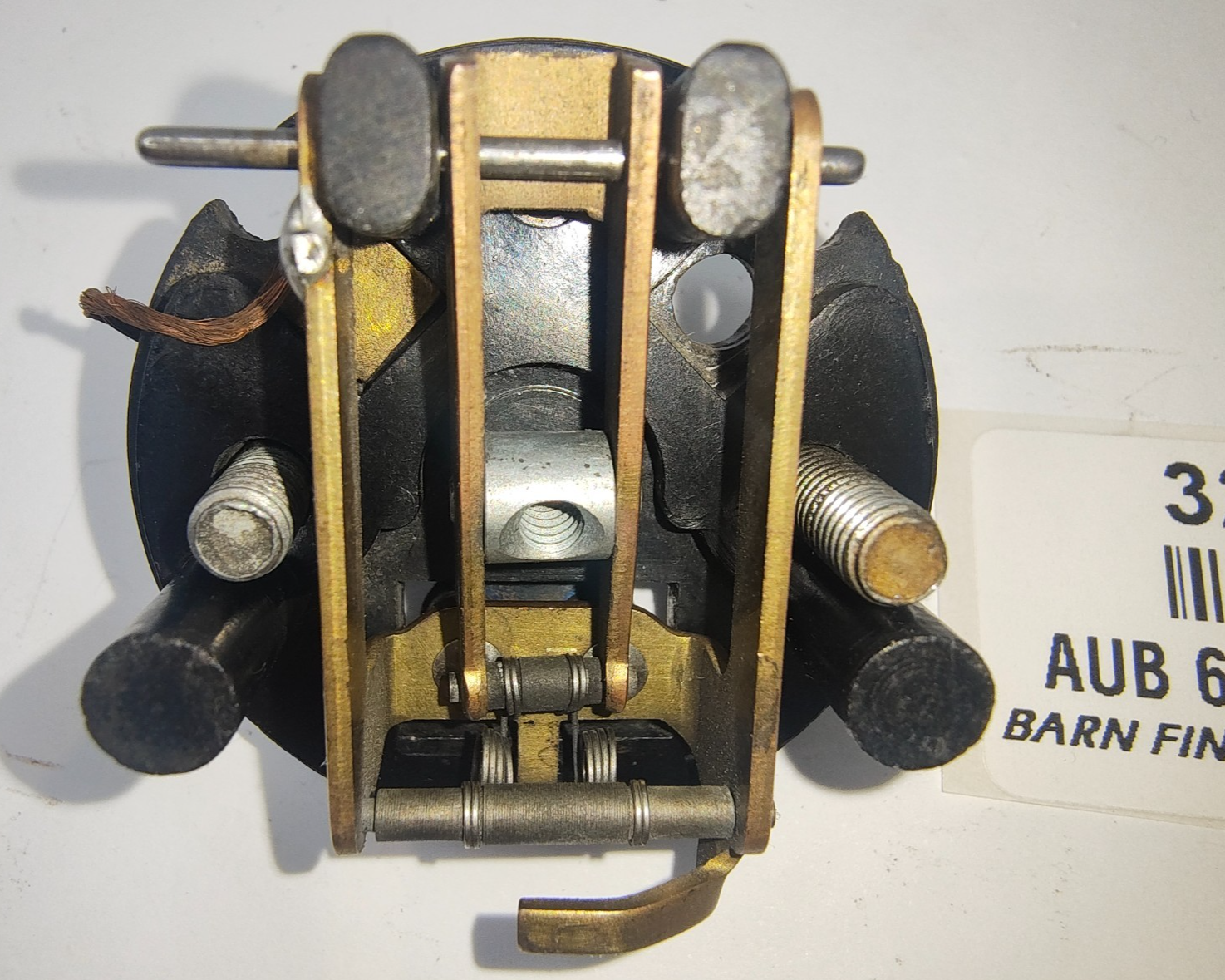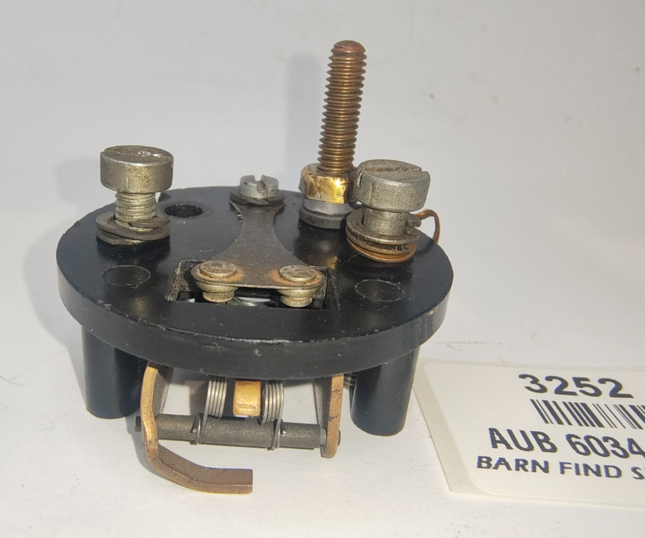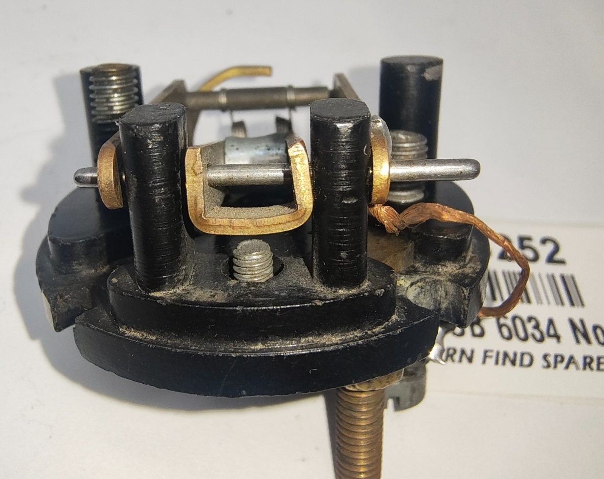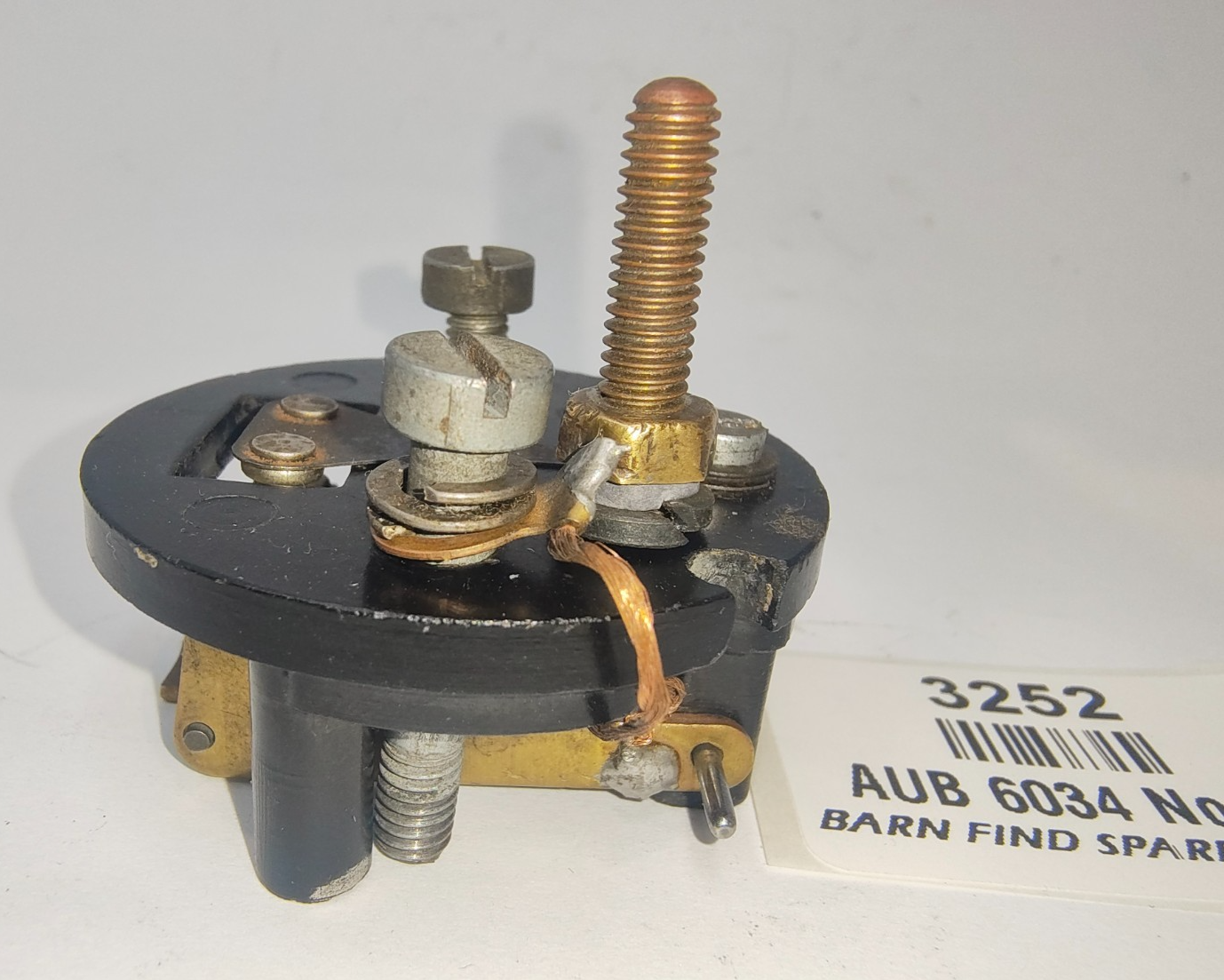 SU original USED Pedestal AUB 6034, complete with double point rocker assembly AUB 6106 including earth tag AUA 1 065, Terminal Stud AUA 1468, Spring Washer AUA 1863, Lead Washer AUA 1662, Rocker Pivot Pin AUA 1435, Contact blade AUA 6036,THERE IS NO Condenser, Resistor/Diode/ Varistor, 2 X Pedestal 2BA Screws AUA 1459