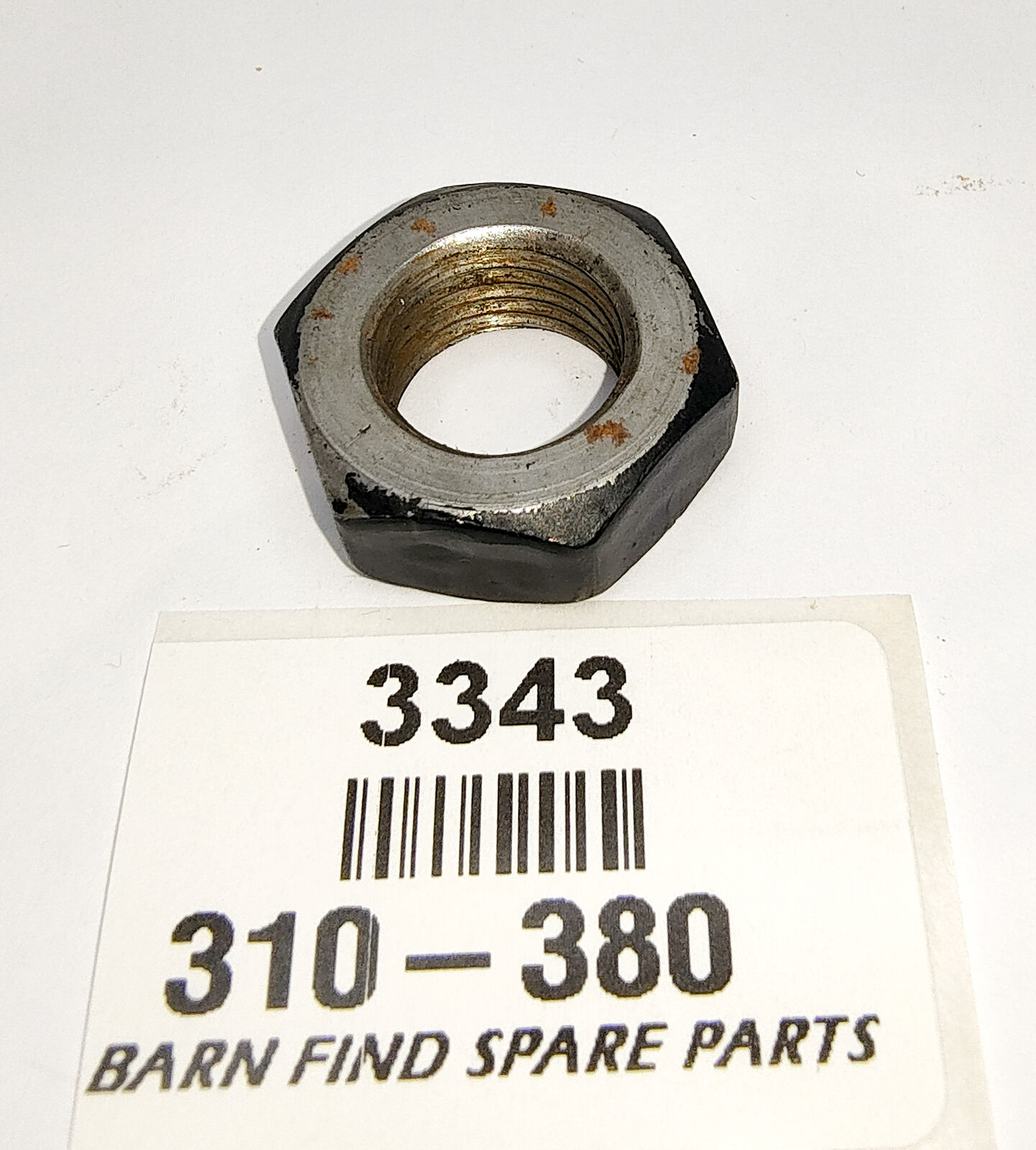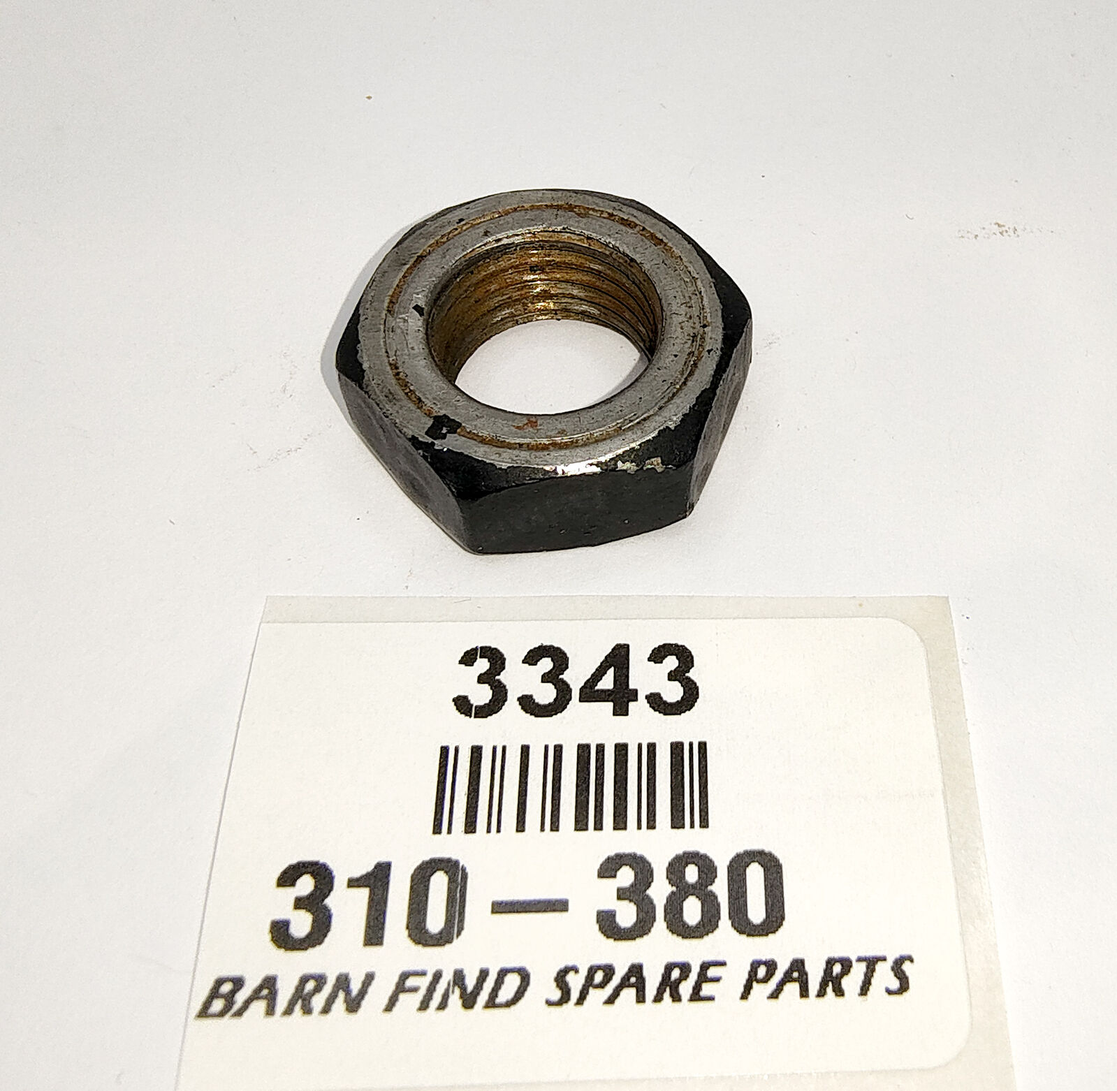 TIE ROD END LOCK NUT Original good used condition (has some black paint on it) 310-810. Fitted to the end of the steering rack and not on the tie rod.  To Suit MGB.