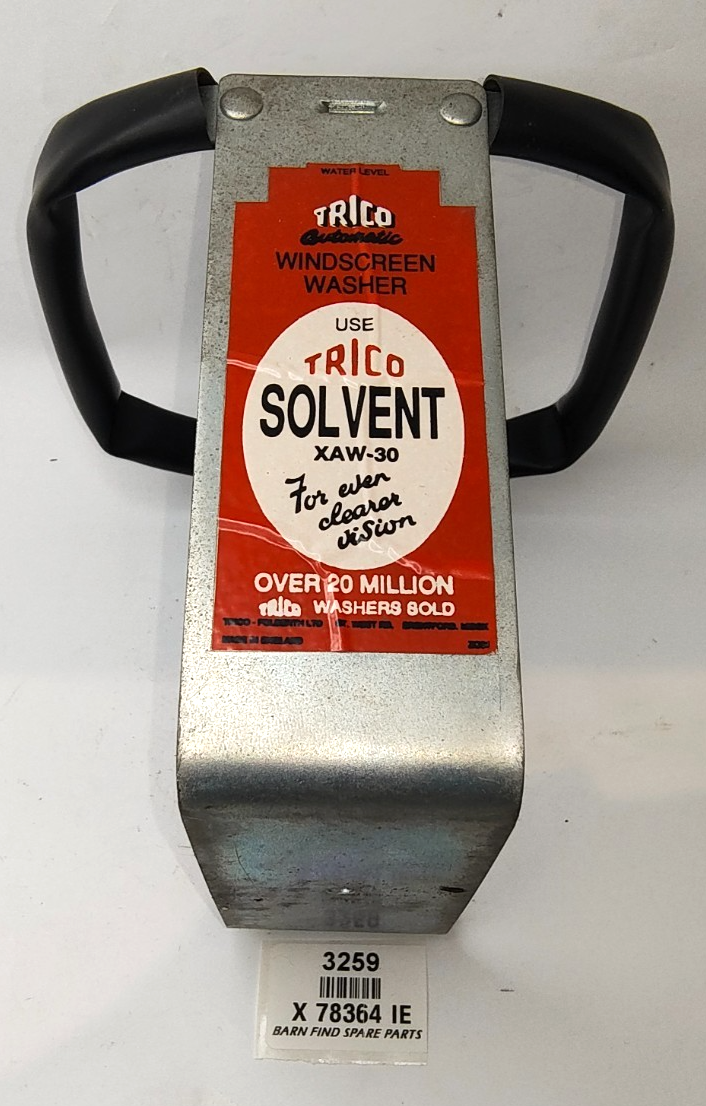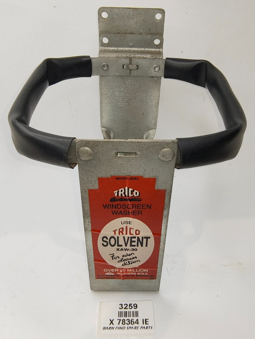 Trico original Windscreen Washer Bottle Frame - Large Square - Anodised with rubber jar cushion, stamped Made in England. New Old Stock  X 78364 IE. Opening 120mm x 120mm. To suit a number of Jaguar models and many other makes such as  Rolls, Bentley etc.  Please examine the photos carefully to ensure this part is correct for your vehicle. Many classic cars have been modified over the years. Please see photo(s) - they form part of the description.