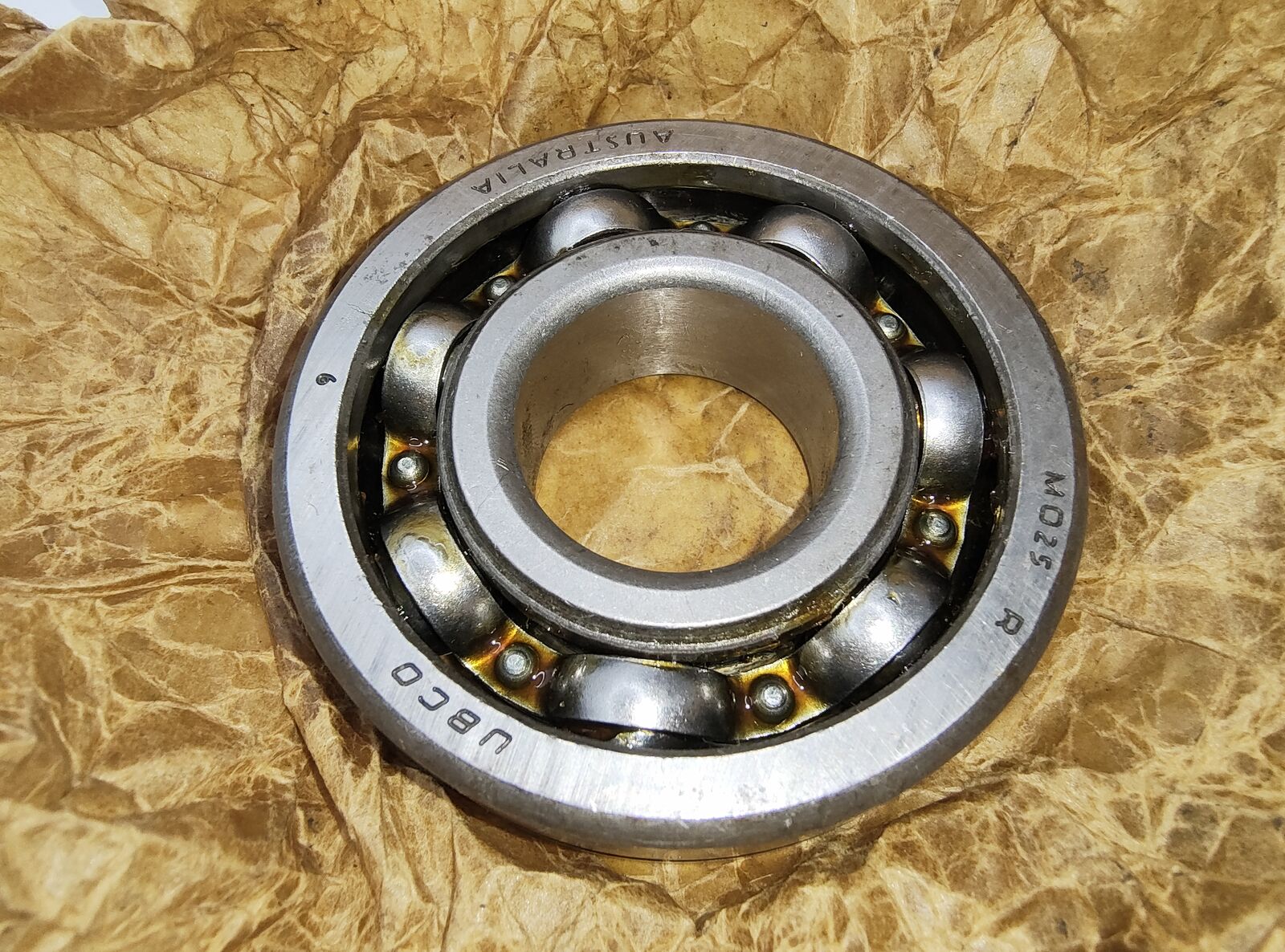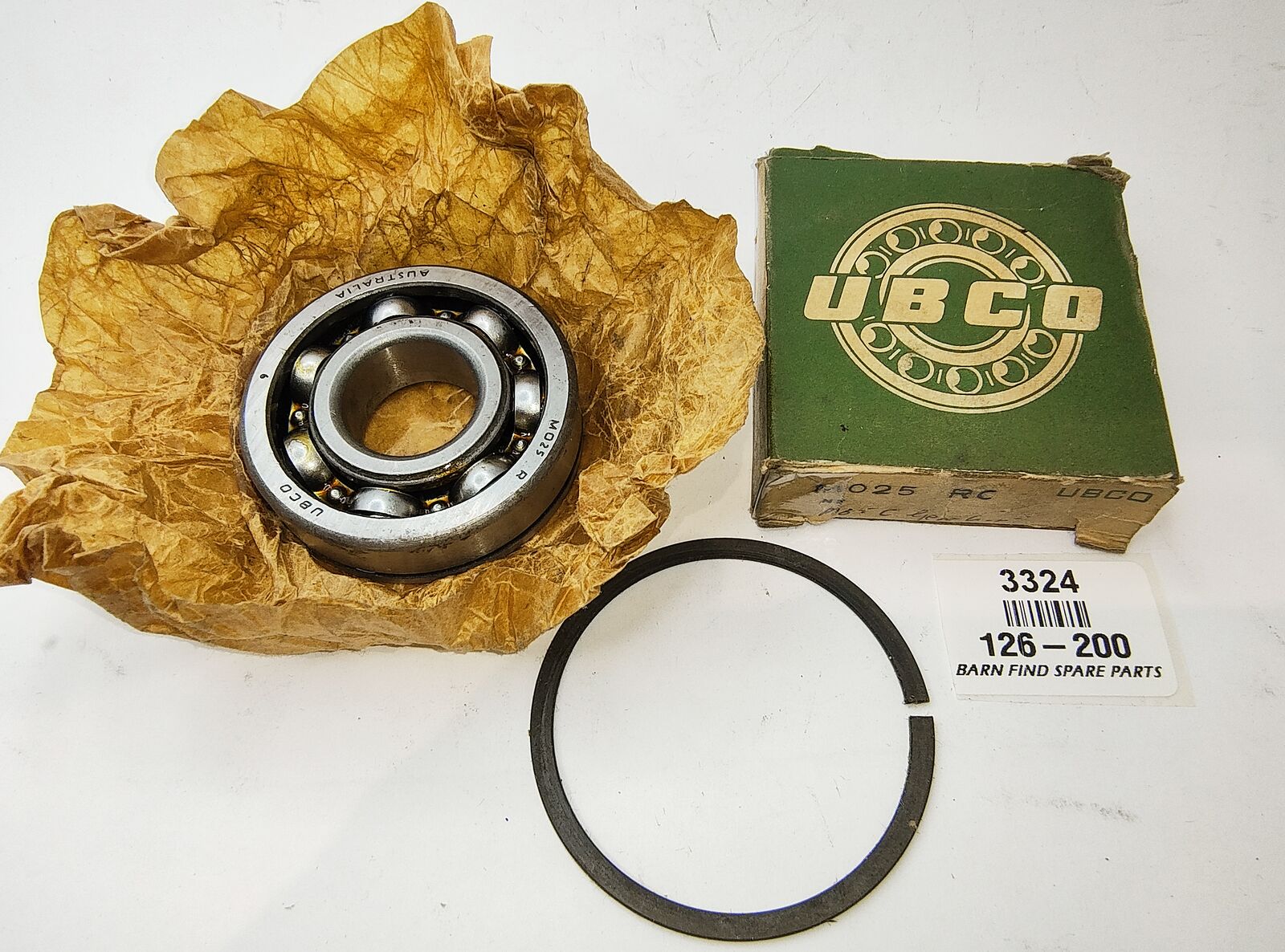 United Bearing Company (UBC) Single Row Deep Groove Open Type Ball Bearing in original packaging, -  Dimensions: 25mm I.D, 62mm O.D, 17mm Width,  supplied with snap ring /circlip. New Old Stock 126-200 .  This bearing is used in the MG TC Gearbox for the rear main shaft bearing.