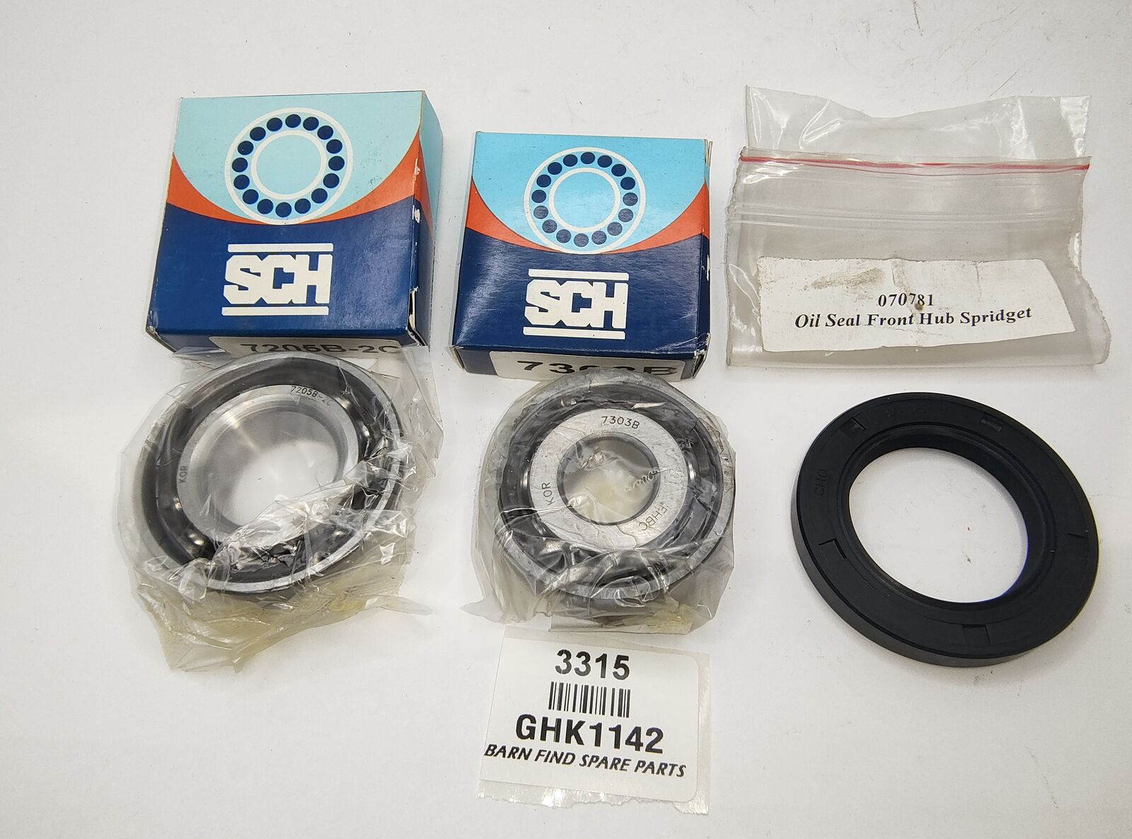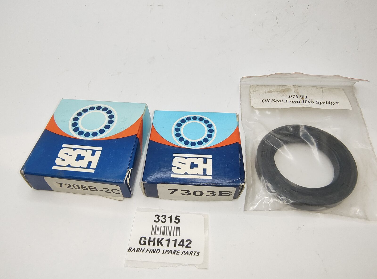Wheel Bearing kit ONE front side New Old Stock GHK1142 includes Outer (7303B) and Inner (7205B-2C) bearings with seal (343573 ) To suit MG Midget Austin Healey Sprite, Morris Minor - Series II and 1000 from approx 1954 onwards, with separate hub/drum. Does not fit early Morris Minor Series MM models with the combined hub/drum.