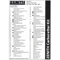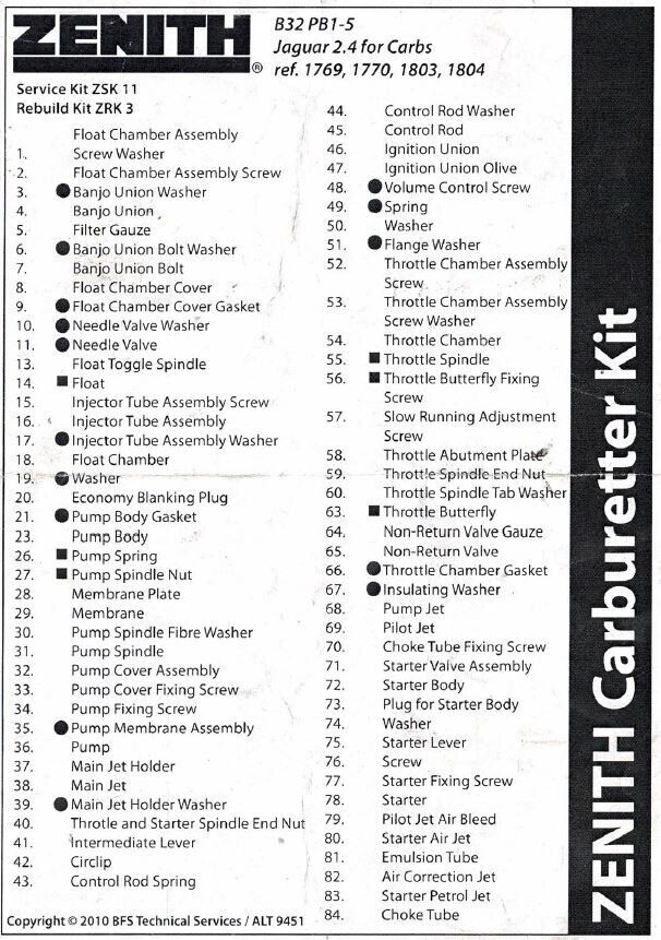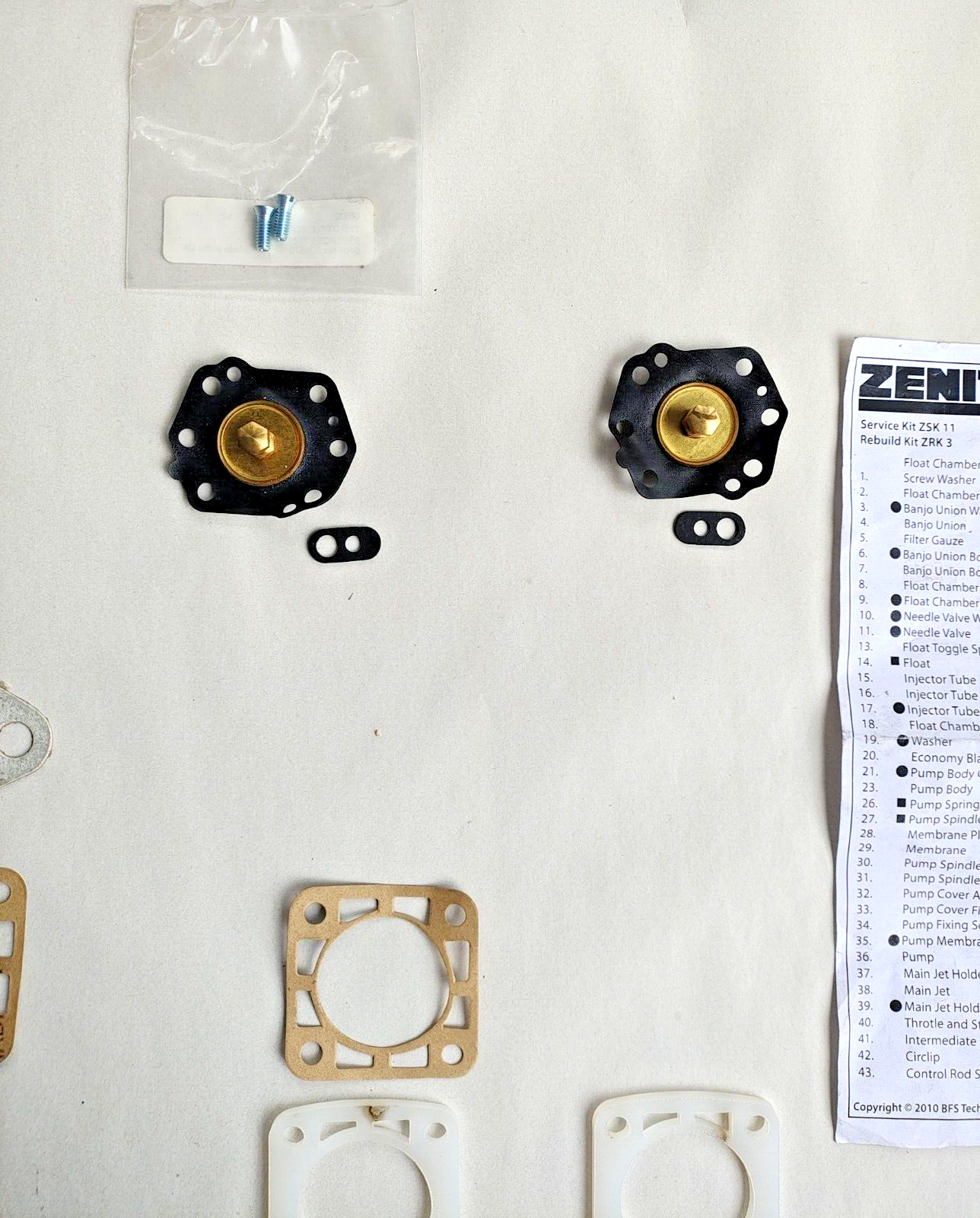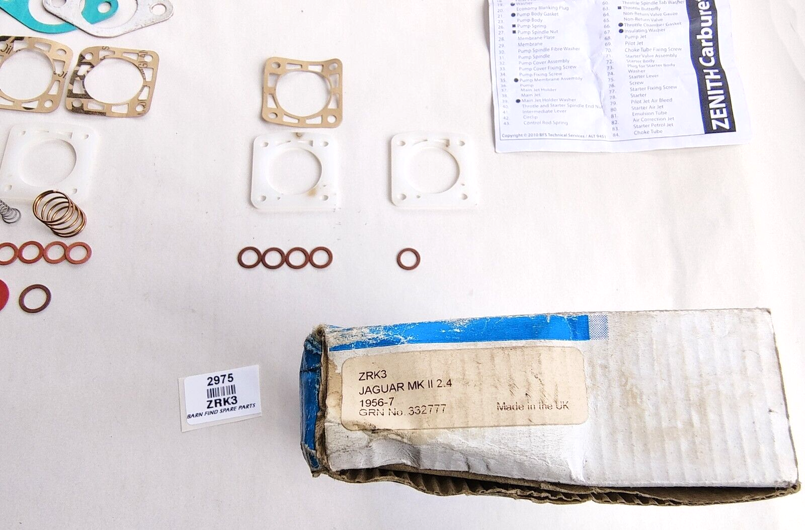 Zenith ZRK3 rebuild kit for Jaguar Mark II Mk2 2.4 1956-57  As best we ascertain see there is one complete kit for one carburettor then there are some parts missing and some parts extra, it includes all items as shown in the photos. New Old stock. Please see photo(s) - they form part of the description.